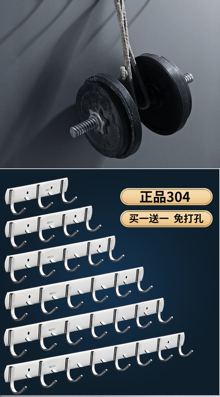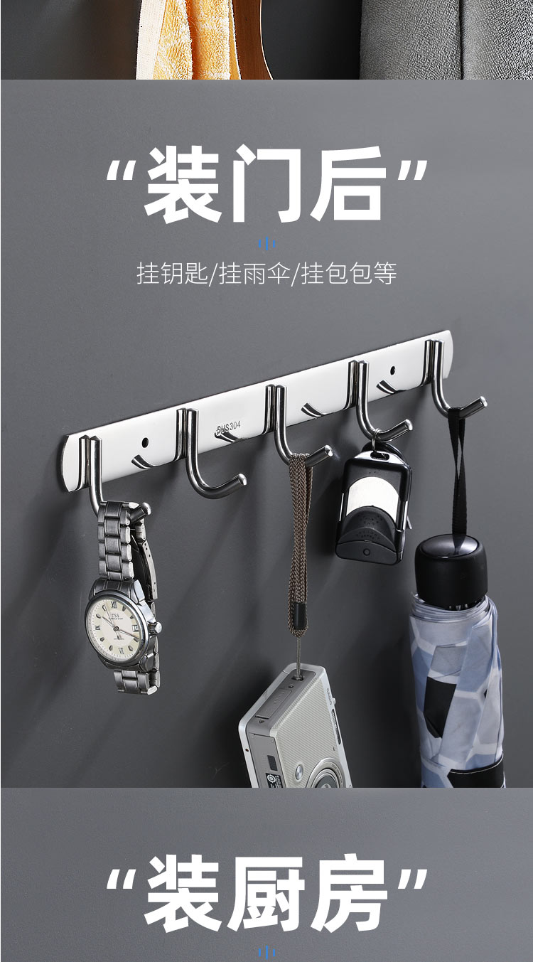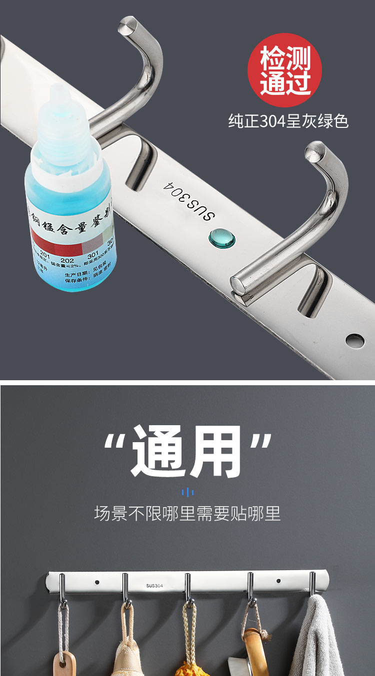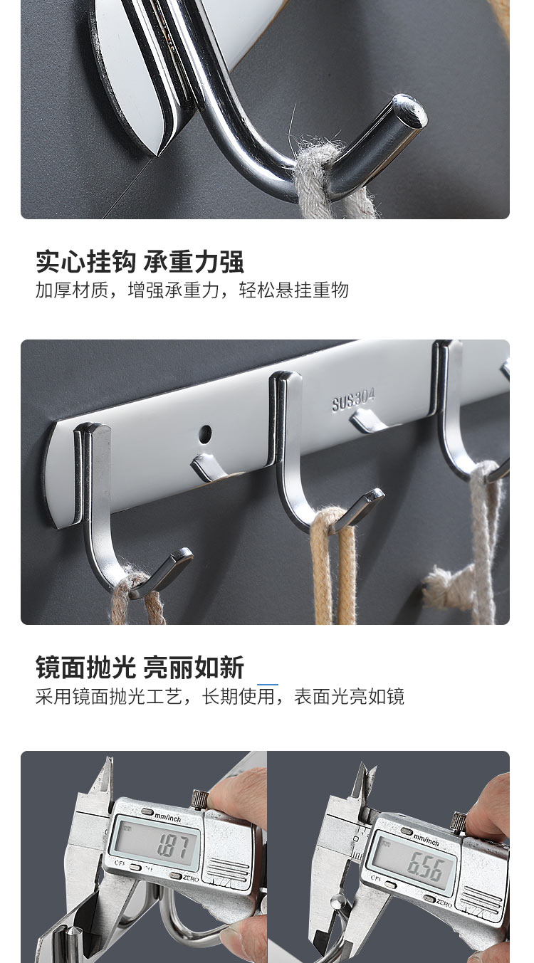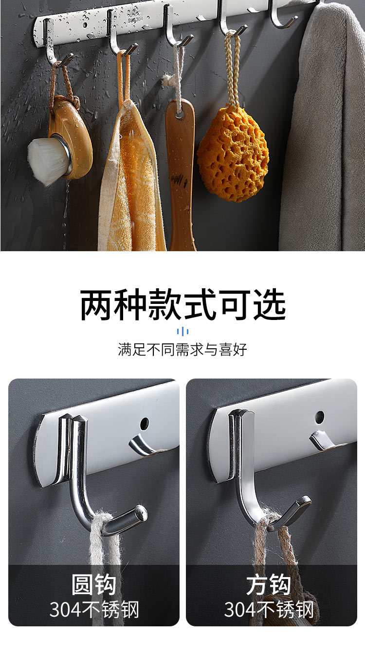 不锈钢衣服挂钩7钩实心圆钩 3321 单位【个】编码【P201900000737】长540mm,钩间距80mm,挂钩宽度30mm, 304不锈钢材质