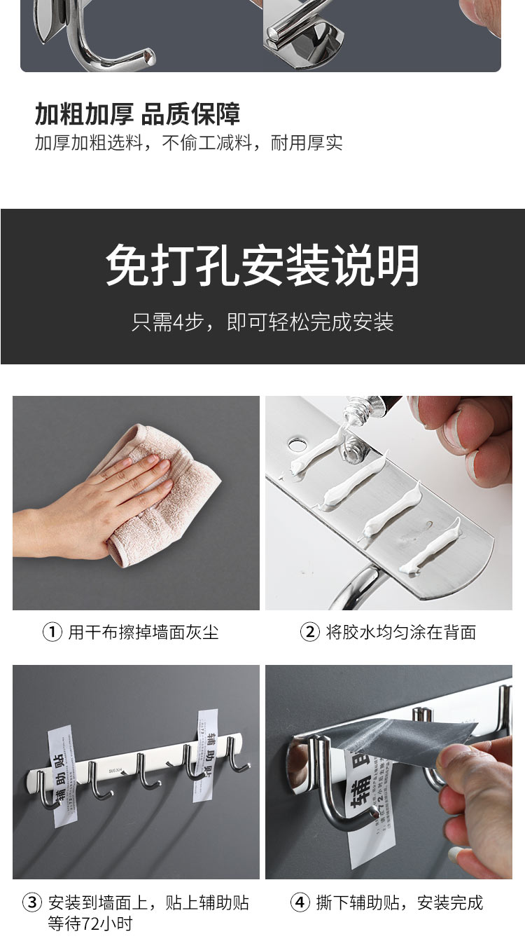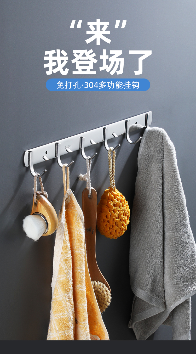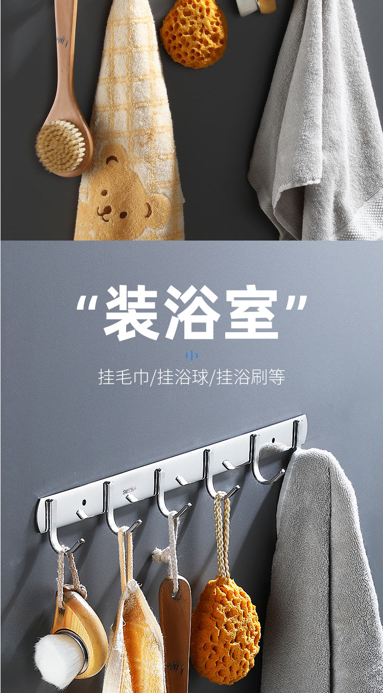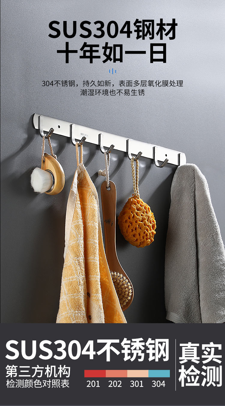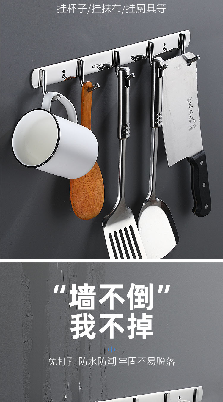不锈钢衣服挂钩7钩实心圆钩 3321 单位【个】编码【P201900000737】长540mm,钩间距80mm,挂钩宽度30mm, 304不锈钢材质