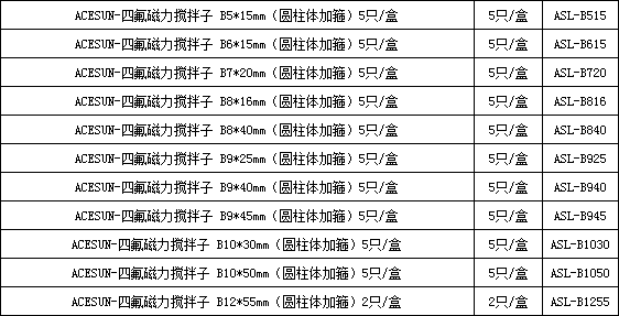 四氟磁力搅拌子 B5*15mm(圆柱体加箍)5只/盒(盒)【ACESUN艾斯琳】【P20230377750】