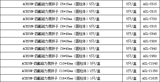 四氟磁力搅拌子 C5*15mm(圆柱体)5只/盒(盒)【ACESUN艾斯琳】【P20230377761】