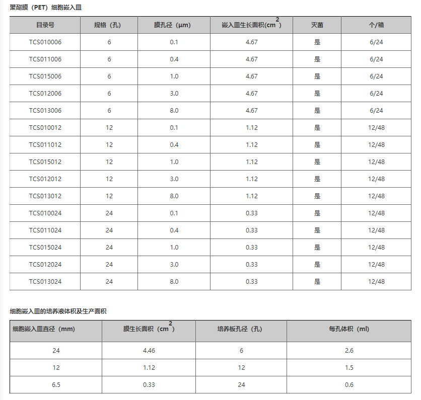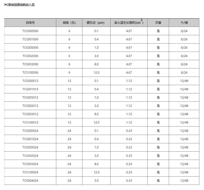 聚碳酯膜(PC)嵌入皿底部具有薄而半透明的膜,经由处理更利于细胞贴附。实验过程中可进行固定和染色。JET提供6种孔径,0.1μm,0.4μm,3.0μm,5.0μm,8.0μm和12.0μm。聚碳酯膜嵌入皿消毒灭菌处理,与6,12,24孔带盖培养板配套使用。