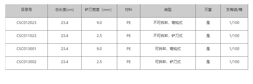 *提供两种类型:9.0mm弯钩和2.5mm小铲刀