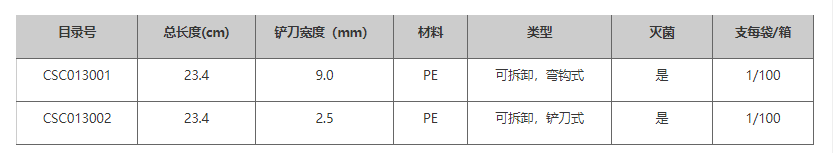 *提供两种类型:9.0mm弯钩和2.5mm小铲刀
