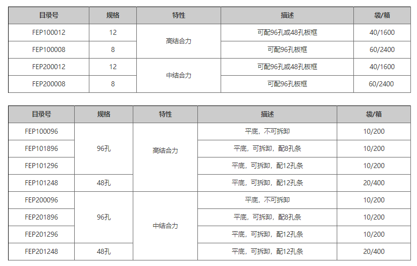 *2种结合力规格可供选择:高结合力酶标板、中结合力酶标板;