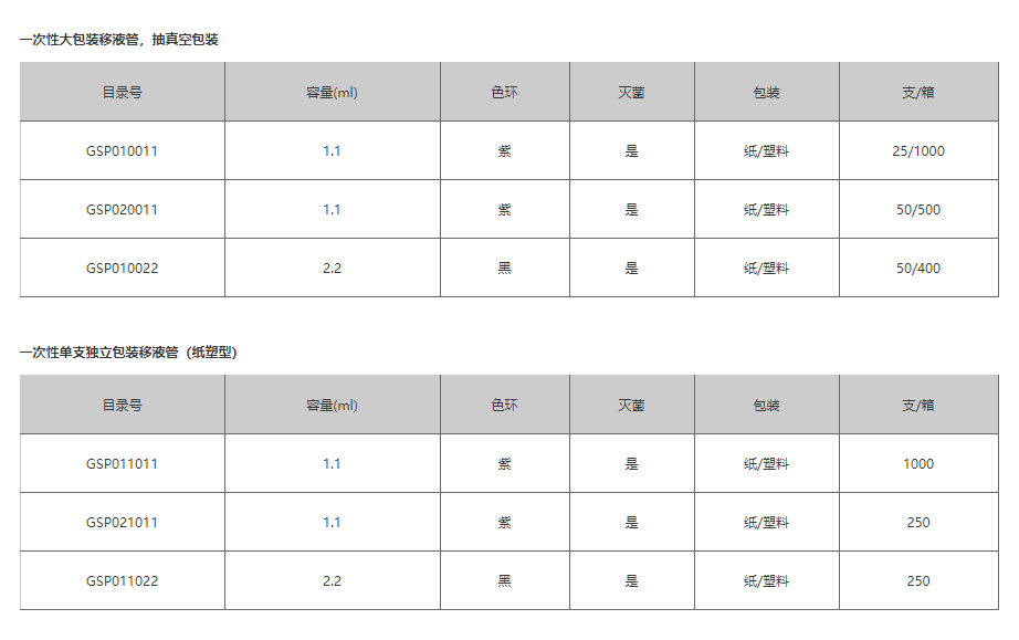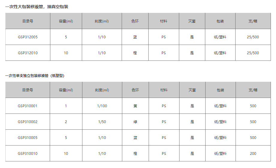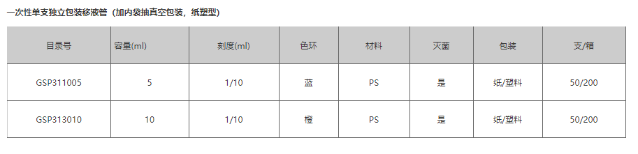 *每种规格移液管均带自有知识产权的滤芯过滤塞