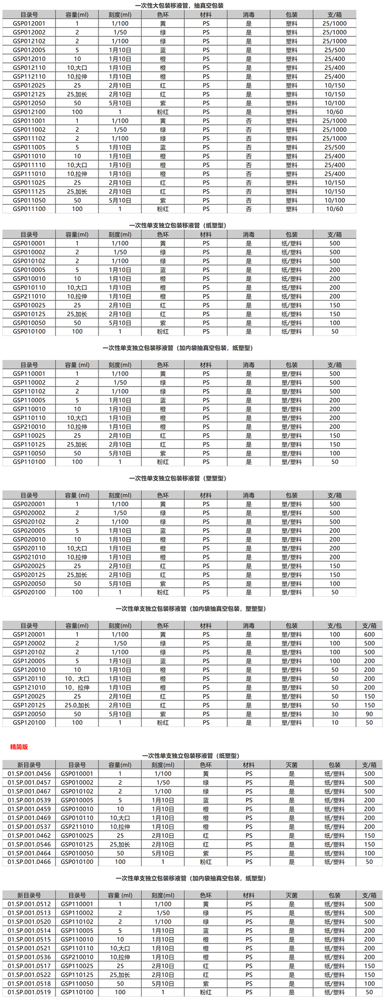 * 1.0、2.0、5.0、10.0ml 移液管:采用拉伸方式成管