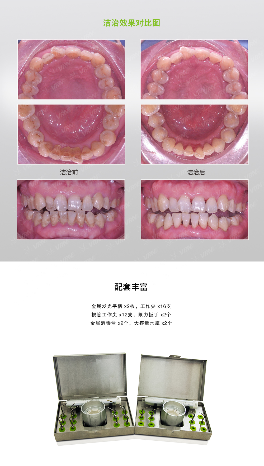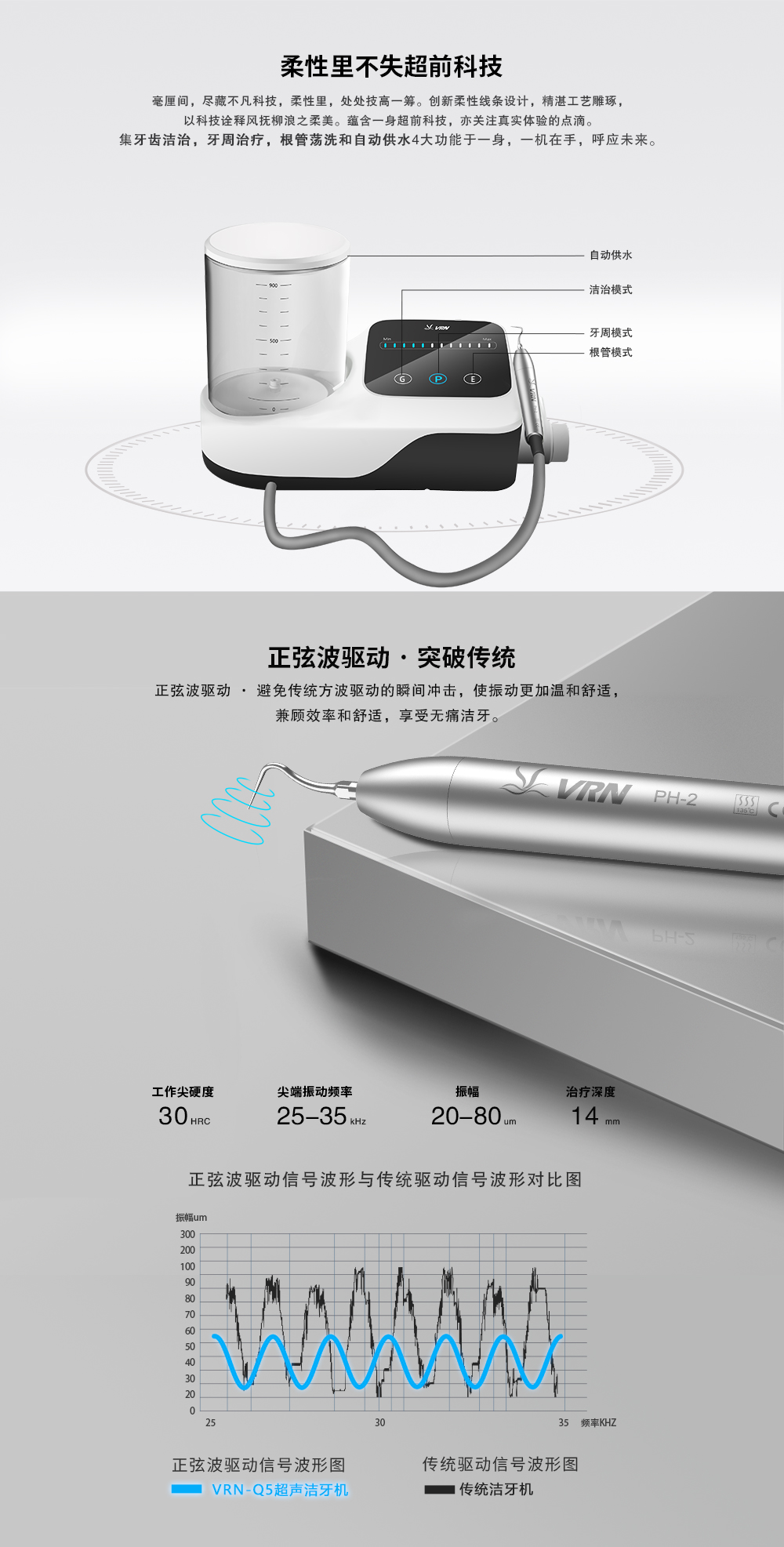 射频发射GB 4824 | B类 | VRN-Q5超声牙周治疗仪适于使用在所有的设施中,包括家用设施和直接连接到供家用的住宅公共低电压供电网。 |