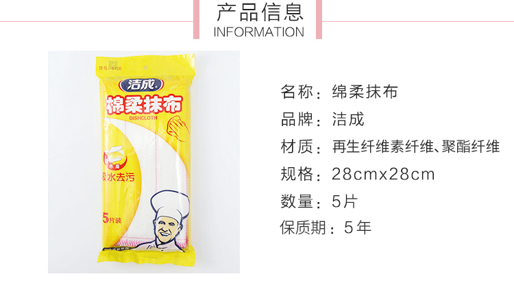 百洁布洁成 单位【包】包装【5片/包】 编码【P201800075802】规格28CM*28CM