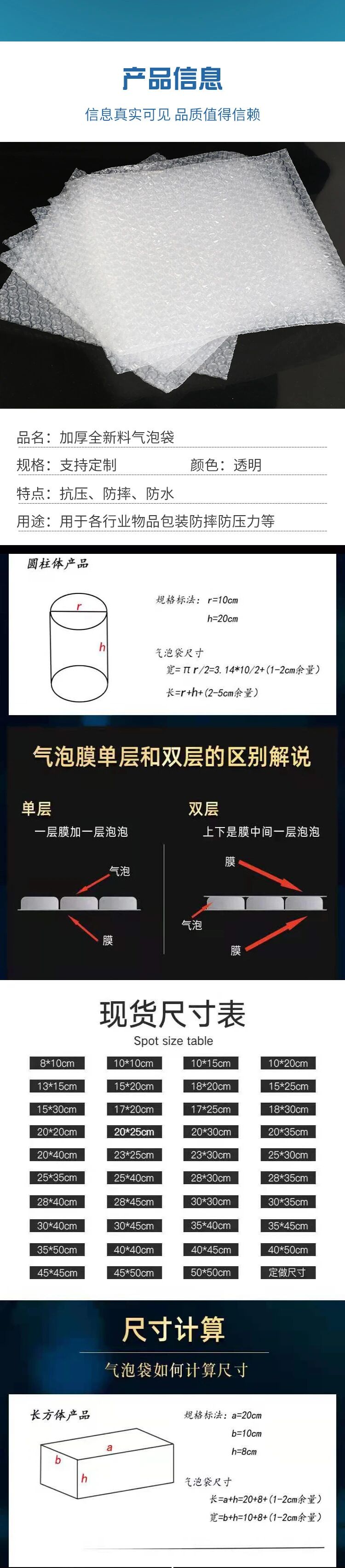 加厚气泡袋泡泡防震膜定做快递气泡膜袋包装泡沫袋子艾斯琳 200*100 单位【包】包装【 100只/包】 编码【P201800074932】