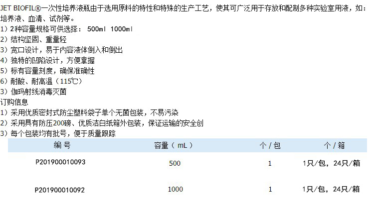 培养液瓶洁特 500ml单位【包】 包装【1只/包 24只/箱】 编码【P201900010093】